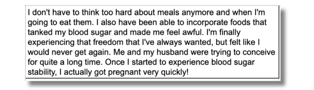 From there, we will talk about how we can help you stabilize your blood sugar naturally, get rid of your symptoms while still eating the foods and doing the activities that used to crash you, and even prepare for your next pregnancy in a way that truly fits your life, like Savana!