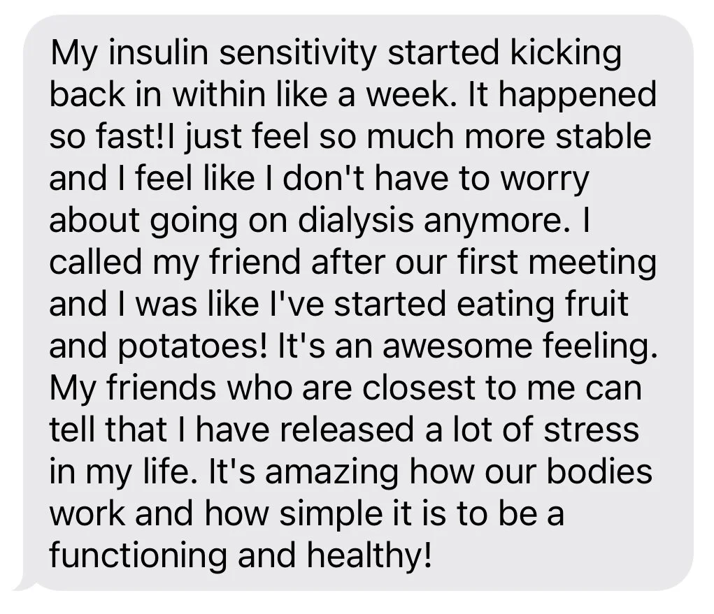 This shift in nourishment was a big part of why her insulin sensitivity started to improve within just 7 days.